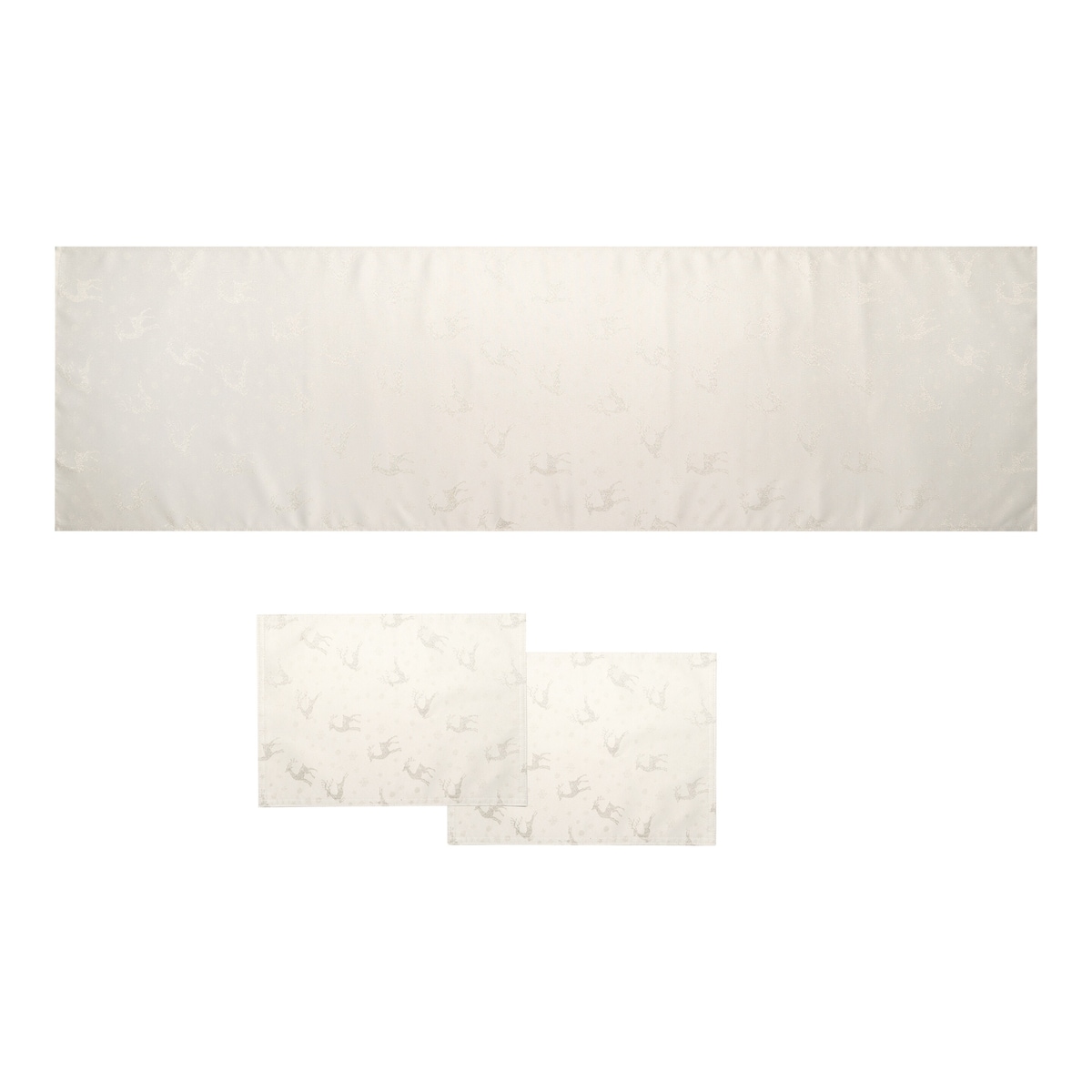 Rentierstark: Tischen Sie mit dieser Textilserie nordisch angehauchte Weihnachten auf! Goldfarbene Rentier-Stickereien auf weiß schimmerndem Stoff setzen edle Akzente!