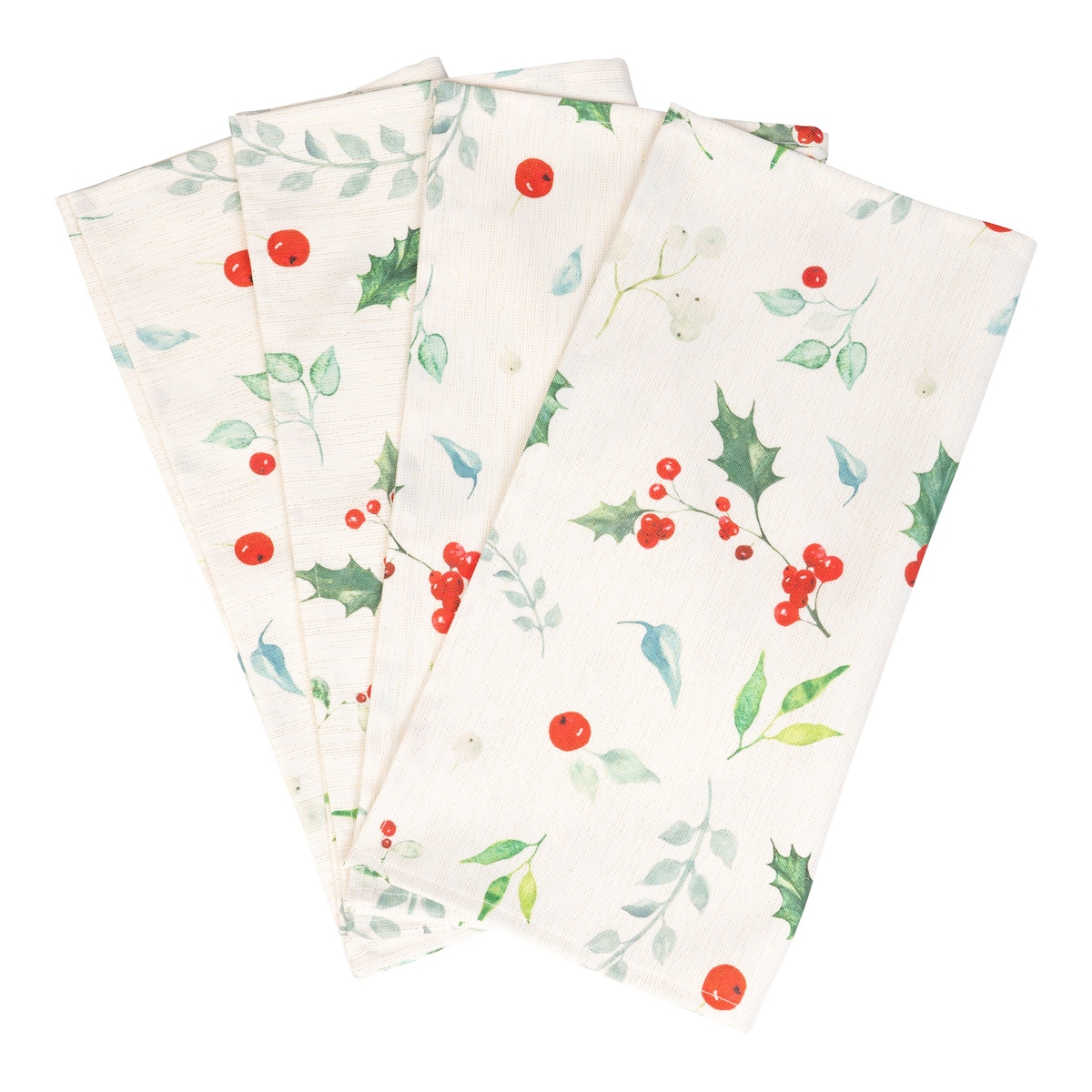 Traditionell sorgt die Stechpalme an Weihnachten für festlichen Glanz. Jetzt sogar mit vier Stoffservietten inklusive Serviettenringen.